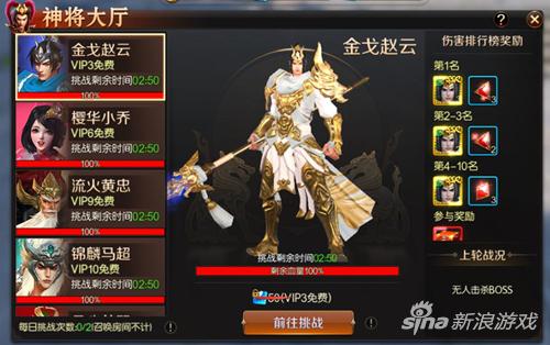 神将大厅是全新跨服混战模式,每天13:00-13:30和21:00-21:30开启,各位主公在达到53级后即可参与挑战。本玩法一共有7个房间对应7大三国神将,主公可以根据每个房间的进入要求选择自己能够挑战的神将房间进入。神将大厅的奖励结算方式是按照主公们在一定时间内对神将boss的伤害排名进行结算,因此在进入神将房间后,各位主公可以选择集中火力攻打神将,以获得较高的输出排名,也可以自由切换PK状态进行相互PK,优先除掉竞争对手以获得更多的对boss输出机会。战斗胜利后各位主公将会根据排名获得数量不等的新武将碎片和稀有宝石! 一起并肩作战的玩家们到底是敌是友?策略与勇气并重的神将大厅,跨服混战一触即发!