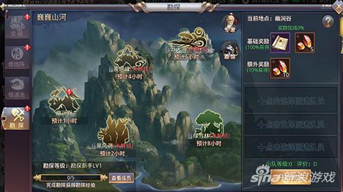 古道西风瘦马,小桥流水人家。只顾着在《昆仑墟》争斗不休的你,是否一直在错过身边的风景,不如一起来“勘探系统”好好欣赏一下昆仑世界的巍巍山河吧!只要达到飞升370级的玩家都可以派遣小队进入幽涧谷、凌绝峰、云天海等五大风景地进行勘探,每次勘探完成后必定会获得丰厚的奖品,还有概率产出珍惜的极品道具!
