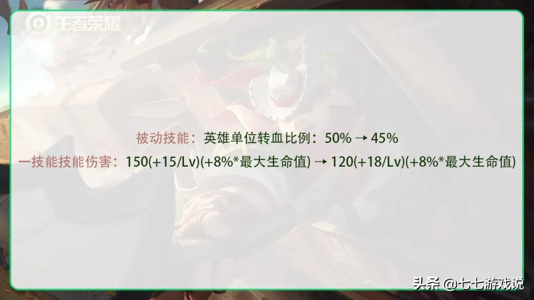 百里守约在赛场上的表现太亮眼了,所以这次惨遭削弱。削弱了被动暴击转化成攻击的数据,二技能的伤害削弱,最重要的是二技能的瞄准红线再也不能通过被动隐匿或者蹲草丛隐藏了。不过为了弥补,增加了守约的攻速成长,二技能的充能cd也减少了。