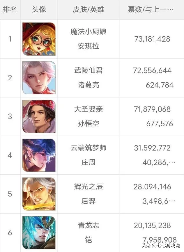 周年庆返场皮肤的投票规则相信大家都已经看到了,除了前两名照常返场外,第3-5名的皮肤大家可以任选一款进行购买,这样一来,就能有更多的玩家可以买到自己喜爱的皮肤了。所以七七估计今年的投票就不会像以往那样费尽心机拉票,能够相对和谐些。