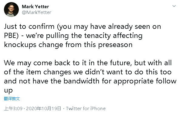 今日早些时候,LOL设计师专门发帖说明了目前韧性和击飞的交互问题。