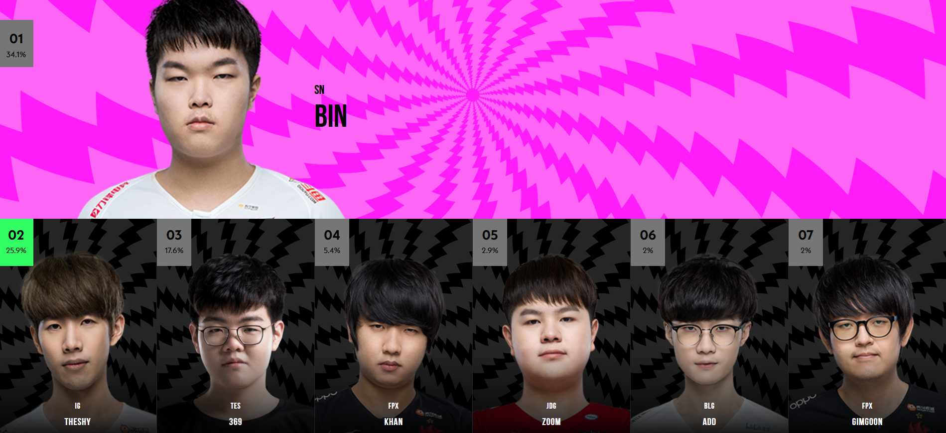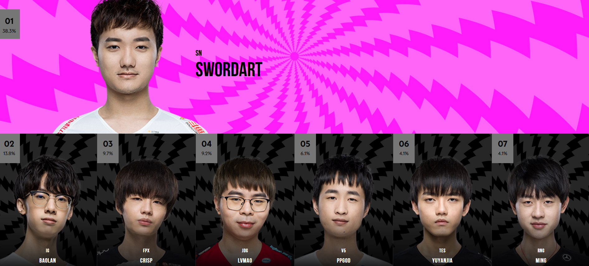 LOL全明星投票:Doinb中单得票最多,SN三人各位置第一
