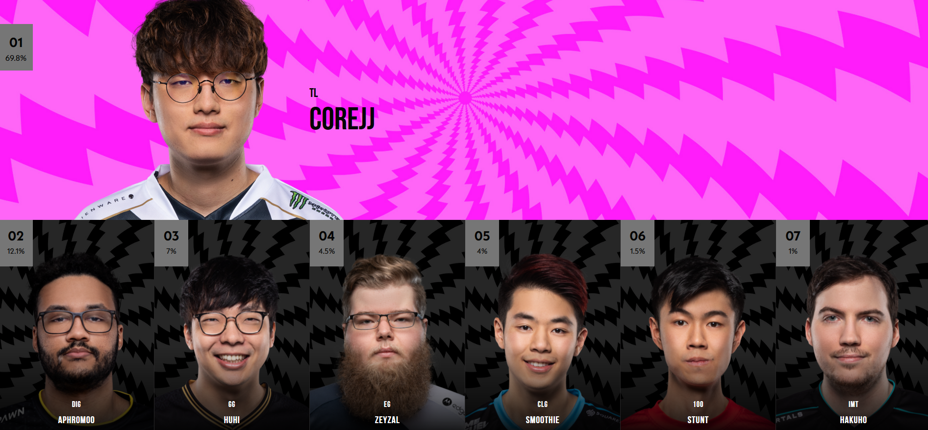 上单位TL impact暂时以28.9%的获票率领先,C9上单Licorice以24.4%排名第二,两者相差不大,impact随时有可能被反超。