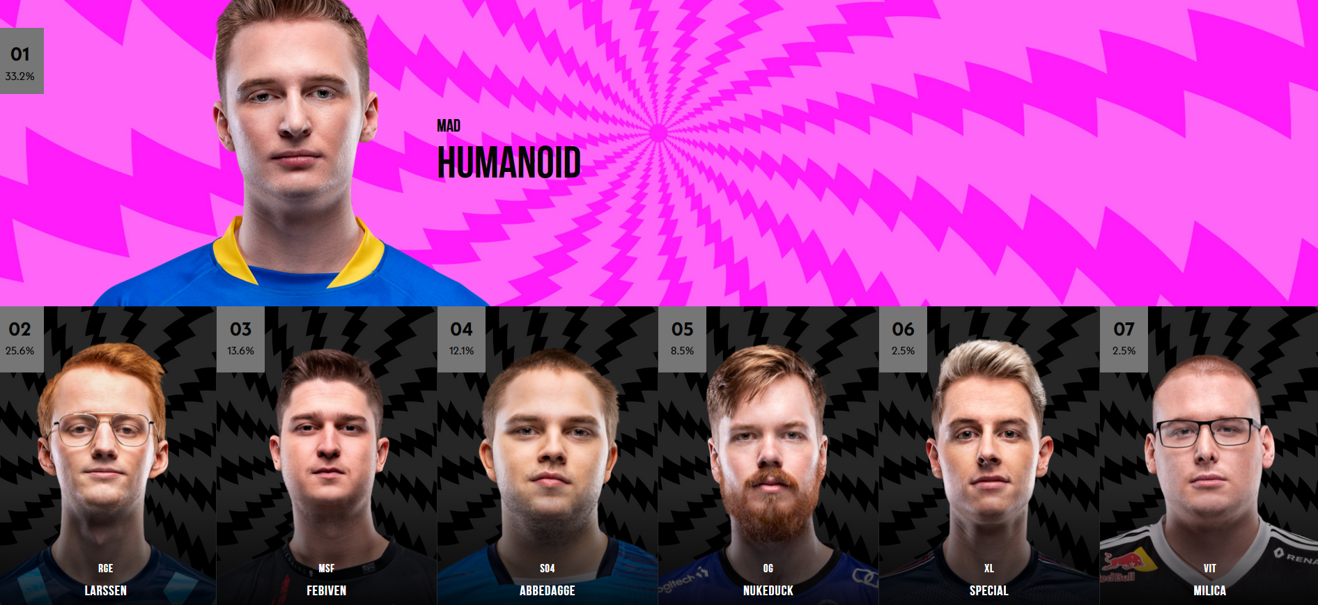 打野位置Karsa得票第一,SofM第二,票数相差不是特别悬殊。