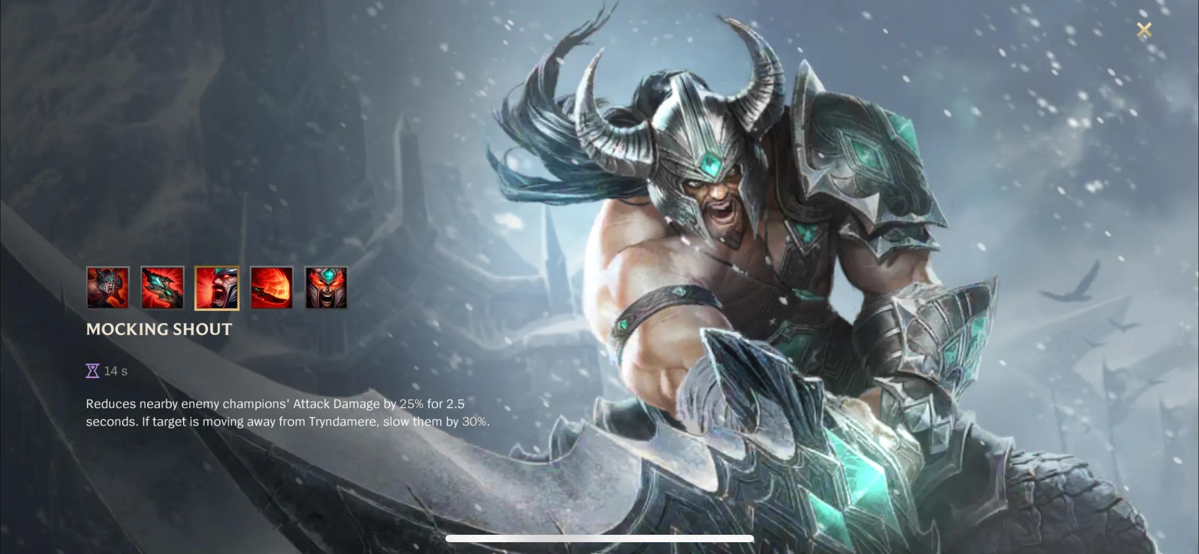 泰達米爾發出戰嚎,降低周遭敵人的物理攻擊。背對泰達米爾的目標跑速也會下降。