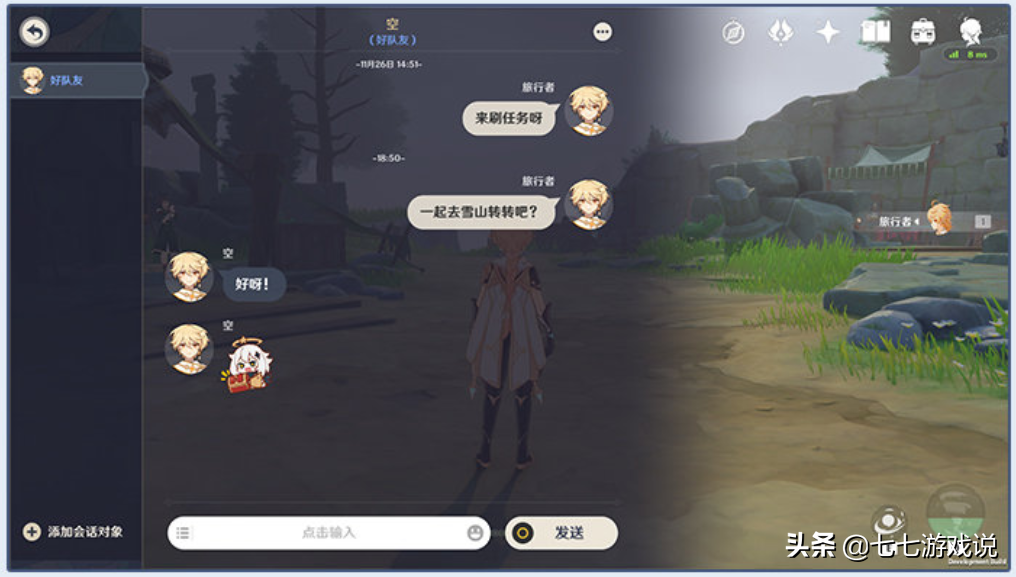 身为原神的忠实粉丝,七七很无语的是加了好友,却不能相互聊天,最后还是自己一个人独自玩耍,那它加好友的意义在哪里呢。这次的1.2新版本更新,官方终于做了一回人,看来官方已经意识到了这个问题。