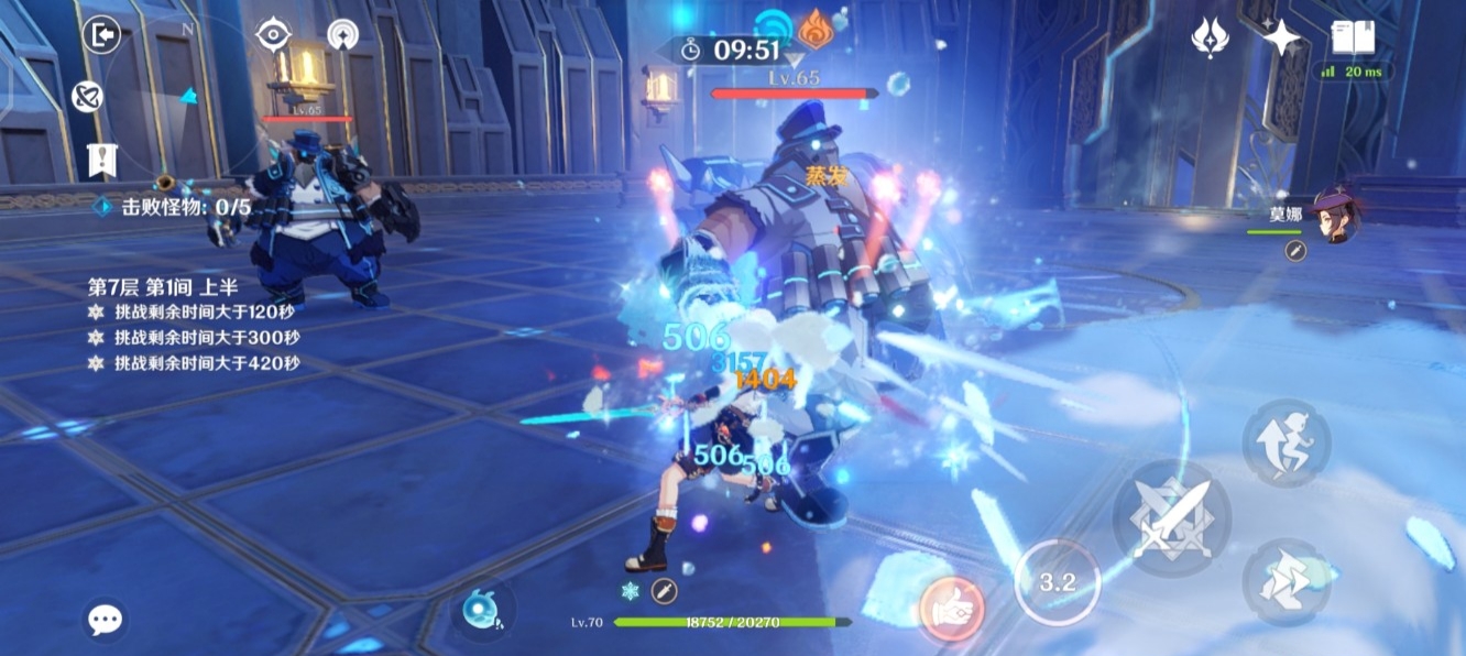 深渊7层水胖子,为了避免有可能的干扰全程不选择攻击向buff。