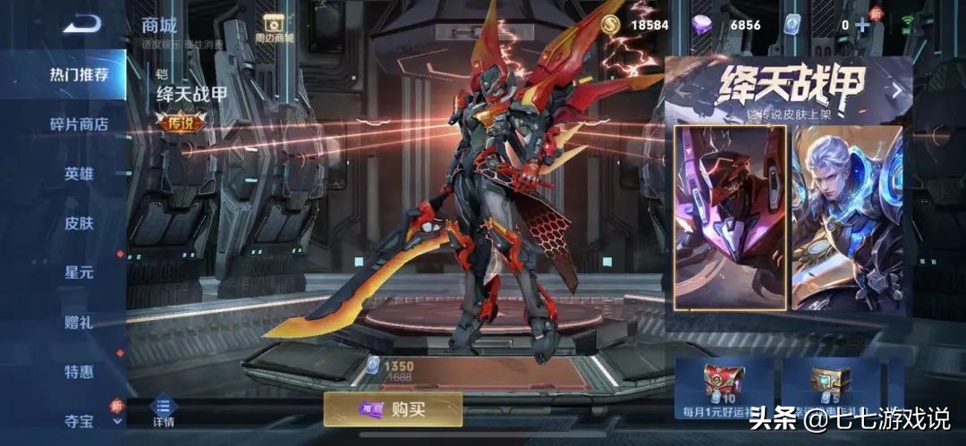 首周优惠购买绛天战甲!铠全新传说级皮肤只要1350点券,还送专属动作,其中还会返还70点券皮肤专属优惠券到邮箱,买了这套皮肤的小伙伴记得去邮箱看看哦。