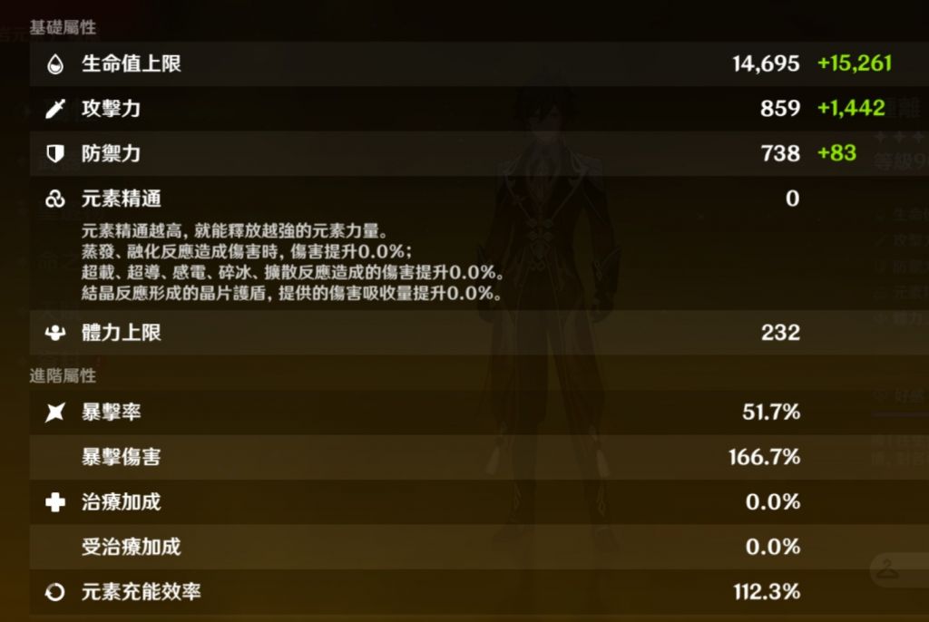凯亚0命,1精祭礼,4宗室属对全不对只求不死,主要给钟离加攻+破冰。