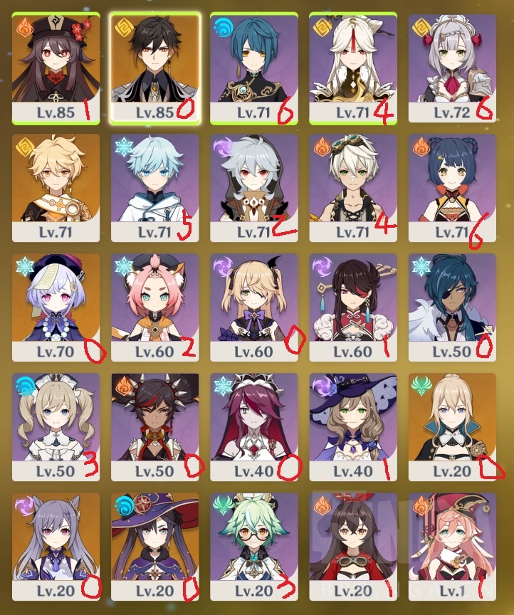 2月入的坑,本来是零氪一直拿着雷泽开荒。胡桃池期间因为武器想抽把狼末给雷泽却歪出了护摩,没忍住氪了首充抽了胡桃一命。之后拿胡桃行秋打着大世界不亦乐乎,现在也51级了。但因为二队雷泽练度不高,深渊一直卡在11过不去。