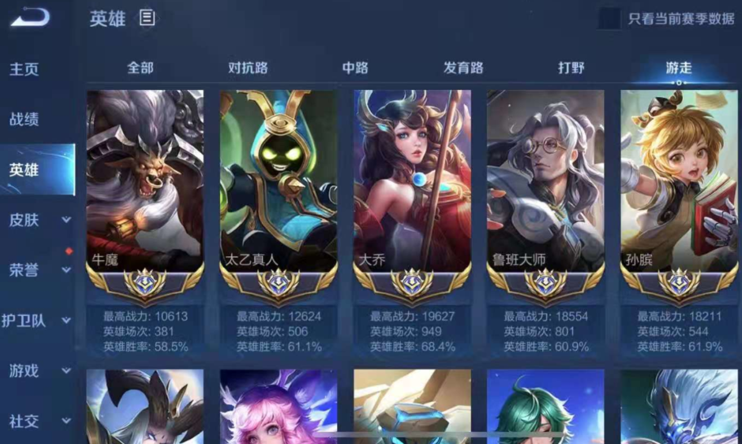 19个皮肤的话,和他拿国服的数量相比只是多了一个,于是辅神又有了一个想法,就是想让自己的国服英雄比皮肤还多,不过遗憾的是,目前的辅助英雄就那么多,辅神已经是全部都拿到国服了,官方这段时间也是没有新出国服英雄,辅神的这个成就自然就完成不了了。