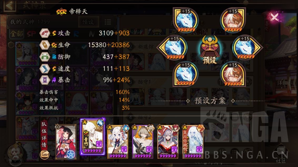 下面说下我的阵容,真的够半成品的,思路是成熟的。奈何有思路,我没那个配置啊,毕竟才一百多天,式神很多没有,御魂也没那么多能防守的,贴下我的配置。