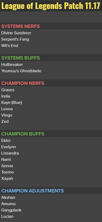 LOL11.17改动前瞻:神圣分离者、劫削弱,佛耶戈技能大幅调整