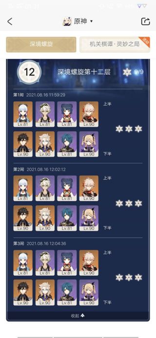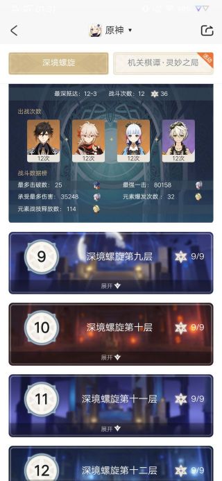 输出手法: 开场钟离套盾,阿贝多e,皇女大,行秋大ee然后钟离站场踢枪循环,有大放大,阿贝多不用大招,伤害感人。12层主要是低潮期行秋别用e,高潮期再放补能量。