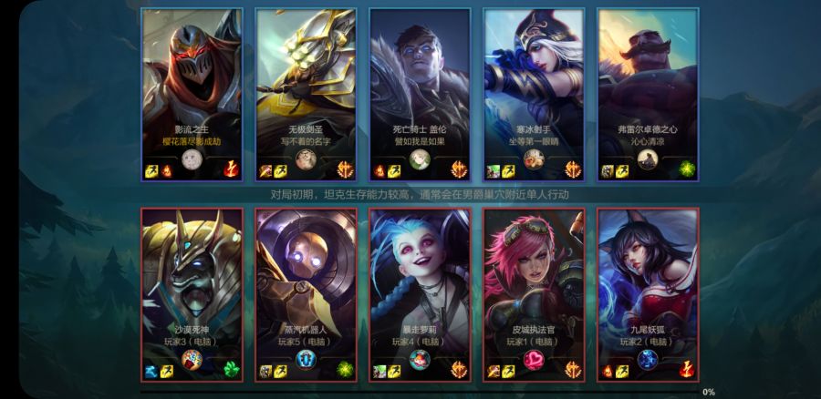 在跳过了新手教程,系统就要求我们去打把人机,我在这把人机就发现了一个问题。