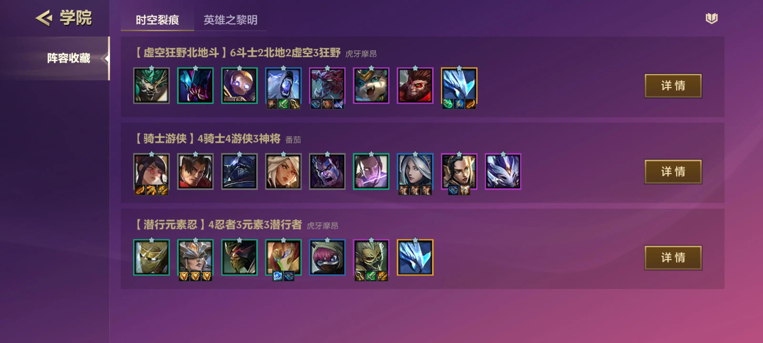 点击学院就进入阵容收藏