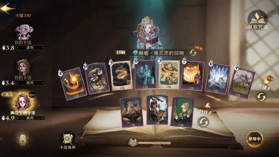 卡组中需要利用低费咒语卡快速触发回响效果,从而使小巫师手中的高费咒语卡费用减半,卡组的能量消耗控制在3-4的费用左右,可以在短时间内打出一套组合拳的效果。