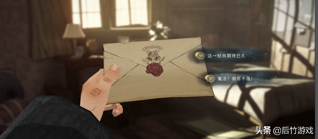 我们在踏入霍格沃茨魔法学校之前,会有一个手持信封的界面。旁边会显示“这一刻我期待已久”和“魔法?我可不信!”,两个选项让我们来做选择。这样的设定,与市面上一些MMORPG主线剧情很相似,同样都是玩家的选择来推动故事情节的发展。