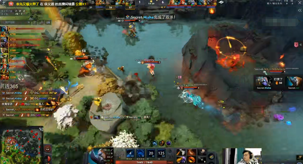 接着秘密又是直接去打盾,虽然OG靠齐天大圣的大招阻挡了一时,但在大圣大招没了之后秘密又卷土重来,并且直接强冲一波拿到不少人头,自然也是轻松收下了肉山,连Sccc都说留给OG的时间不多了,确实他们的失败也只是时间问题啊。