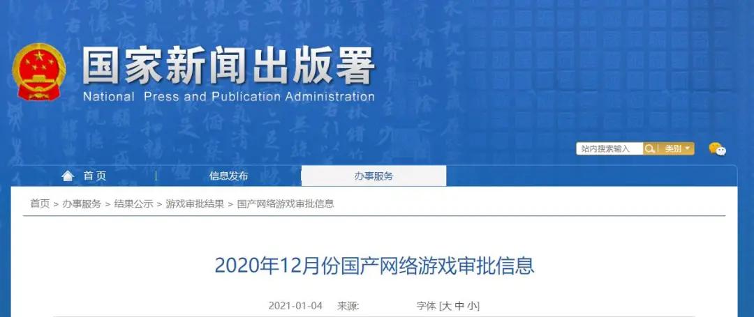 2021年1月4日晚,2020年12月国产游戏审批信息公示。本批次共有89款游戏通过审批,其中手游86款(含休闲益智类手游35款),客户端游戏3款,网页游戏1款。