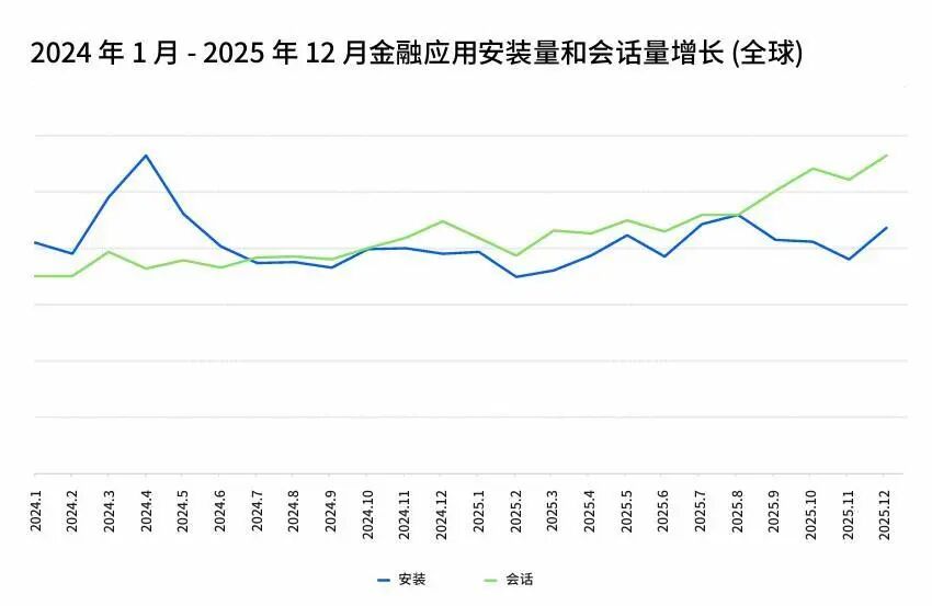 金融类应用呈现出极高的用户粘性:安装量微降4%,但会话量强劲增长21%。金融工具正全面融入日常生活,成为真正的超级应用。
