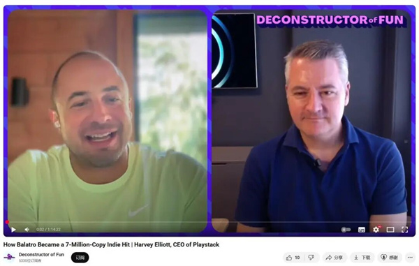 在这场DOF发起的访谈中,Playstack CEO Harvey Eagle 回顾了他们与《小丑牌》的缘分,详谈如何在“信息噪音”中找到真正的好游戏、如何与单人开发者建立信任,以及在AI时代,独立游戏创作和发行的边界正在发生怎样的变化。