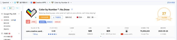 2020年,风眼科技上架的解谜类游戏《Brain Out》(中文名《脑洞大师》)仅历时1年实现累计过亿次下载,至今累计斩获3.48亿下载。《Color by Number ®: No.Draw》(中文名《数字填色书》)自2017年底上架,至今斩获近8000万次下载。