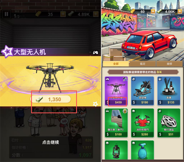 每挑战下一个关卡,也需要钞票解锁,通过商品价格流损、关卡解锁,形成了初期钞票的大量消耗