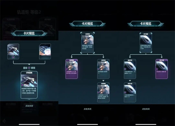 在星级强化项中,除了提升伤害等选项外,还会出现连锁卡牌和组合卡牌,是游戏的一大核心玩法。连锁卡牌为某些强化项拥有前置选项,拥有以后才有概率刷出。组合卡牌为特定的两种武器在场时,满足星级要求后,可以刷出带有组合技效果的卡牌。
