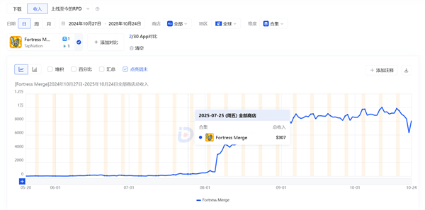 产品方面,《Fortress Merge》在今年4月份首次上架,于7月份正式进入大规模获量。