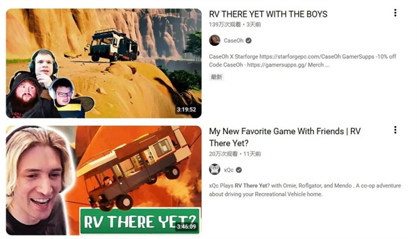 主播与短视频创作者成为传播主力,Twitch、YouTube上充满了相似的片段:四个人在山路上吵着开车,房车侧翻、绞盘乱甩、全员笑倒。