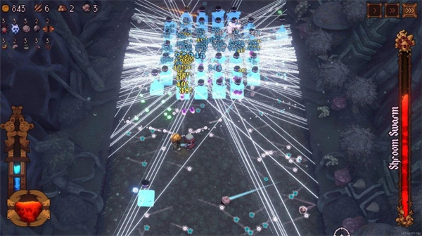 不同的球体拥有火焰、雷电、冰冻、磁力等属性,融合后会变成全新的组合,比如能连锁爆炸、自动追踪、分裂成数十颗小球。