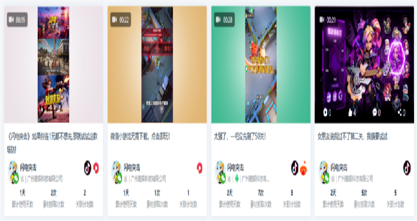 买量方面,根据ADX监控的数据显示,《闪电突击》在近期进行了小规模的买量投放,投放媒体以抖音、西瓜视频和番茄小说为主。近期热门素材涵盖末日生存、搜打撤玩法、roguelike事件、角色展示等多种类型。