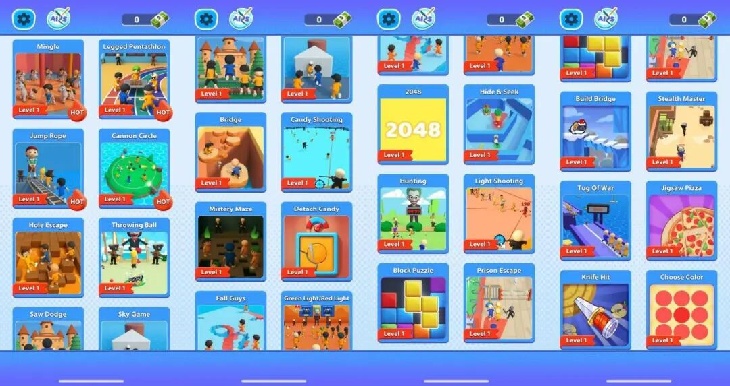 值得一提的是,《456 Run Challenge: Clash 3D》的iOS版上线于2024年,游戏内容经过长期的更新迭代后,当前版本中不仅含有“鱿鱼游戏”的元素,还加入了大量热门的超休闲玩法,已然成为休闲玩法大合集类产品。