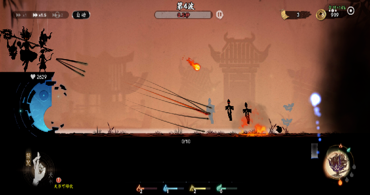 在游戏中,符咒具有显著的生效范围限制,玩家手动释放,需进行瞄准才可以对怪物构成伤害,不同的符咒施放技能轨迹各不相同。蓄力条形式出现的随机品质符咒,提供显著的伤害倍数。由于玩家初期数值成长薄弱,符咒的高倍数伤害、低获取成本,有效驱动玩家高频消耗符咒闯关,有效搭建“打牌感”。