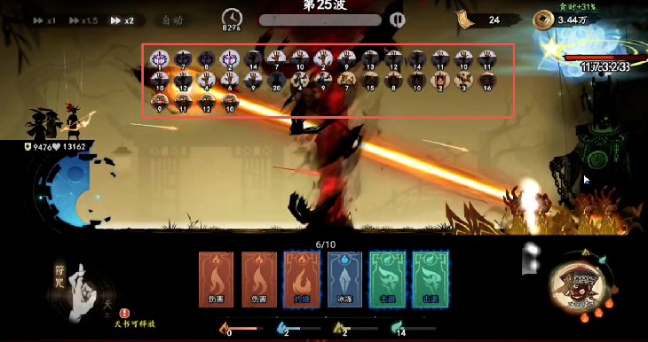 ● 玩家依赖累加天书构成多段技能通关