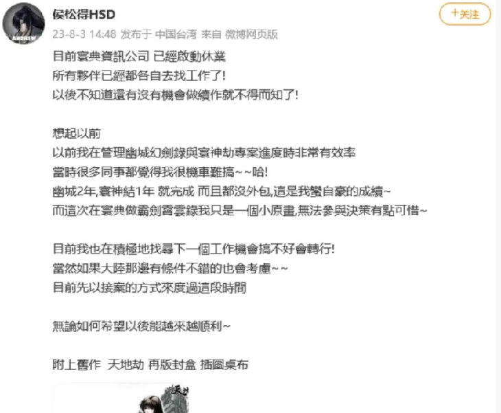 1.《霸剑霄云录》:作品在,制作公司进入“休业”