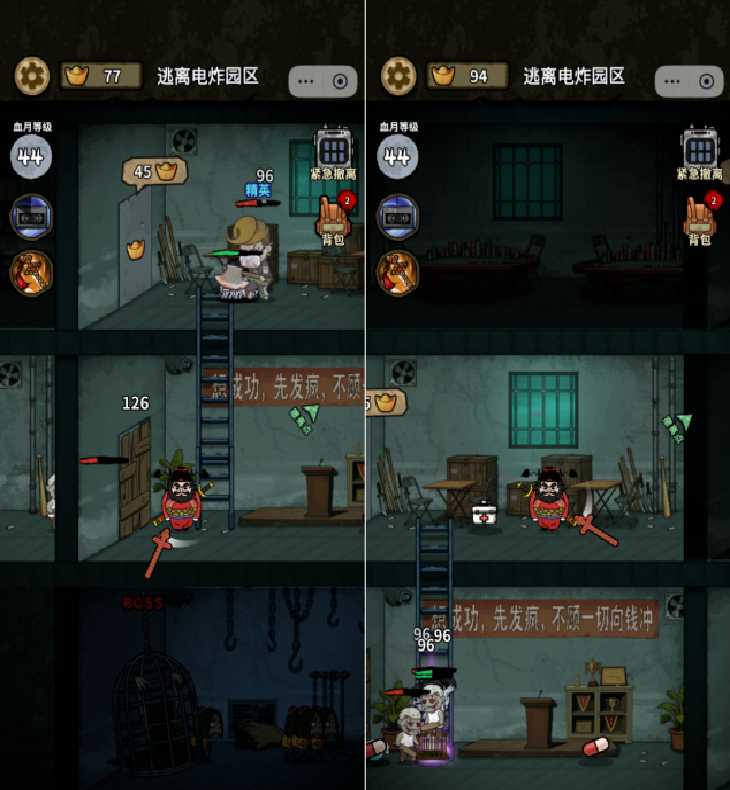 《病毒大逃杀》在游戏内呈现出3种“撤”的场景。其中第一种 ,就是玩家闯关过程中,怪物与玩家的实力不对等,形成的撤退、拉扯等环节。