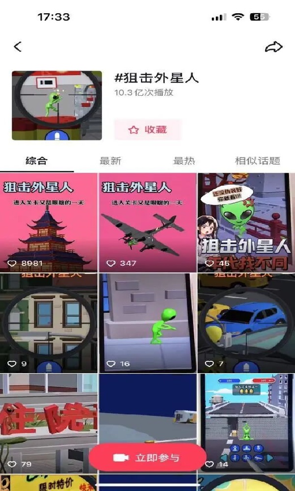 整个10月至11月期间,#狙击外星人 相关话题播放量超过10亿次,并衍生出众多有趣的内容: