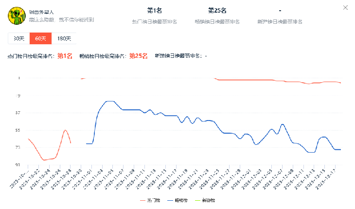 《狙击外星人》作为近期的爆款小游戏之一,自10月底登顶抖音小游戏热门榜第1后,维持了近一个月的时间。截至现在,游戏依旧在热门榜稳居Top10以内,同时在畅销榜也在70名左右。