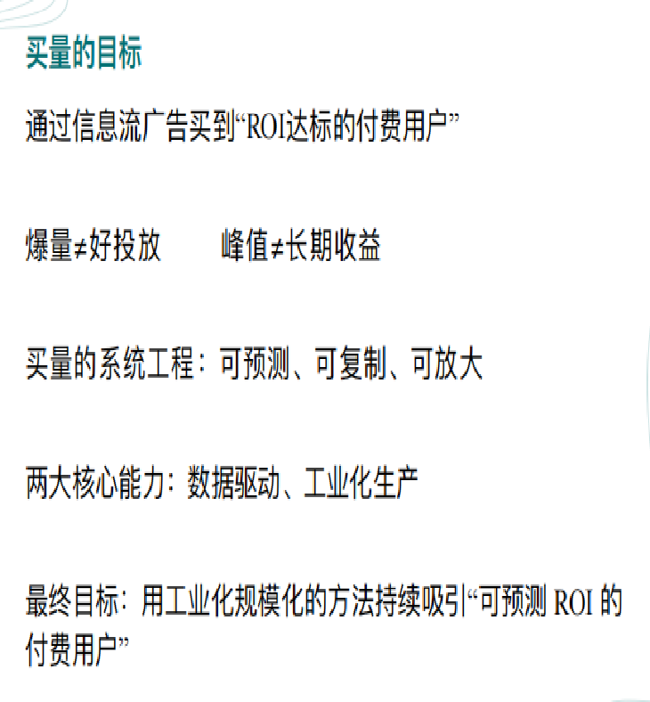 最终目标,是通过工业化、规模化的方法,持续吸引ROI可预测的付费用户。