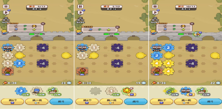 在用户的调整循环中,围绕”产出速度”“齿轮方位”“战斗单位”“单波士兵产量”“局内士兵补充”“比例调控”“失败二次挑战”共6个环节循环进行,每一步期间玩家面临的对应可能均属于二元结果,形成有效的简便循环。