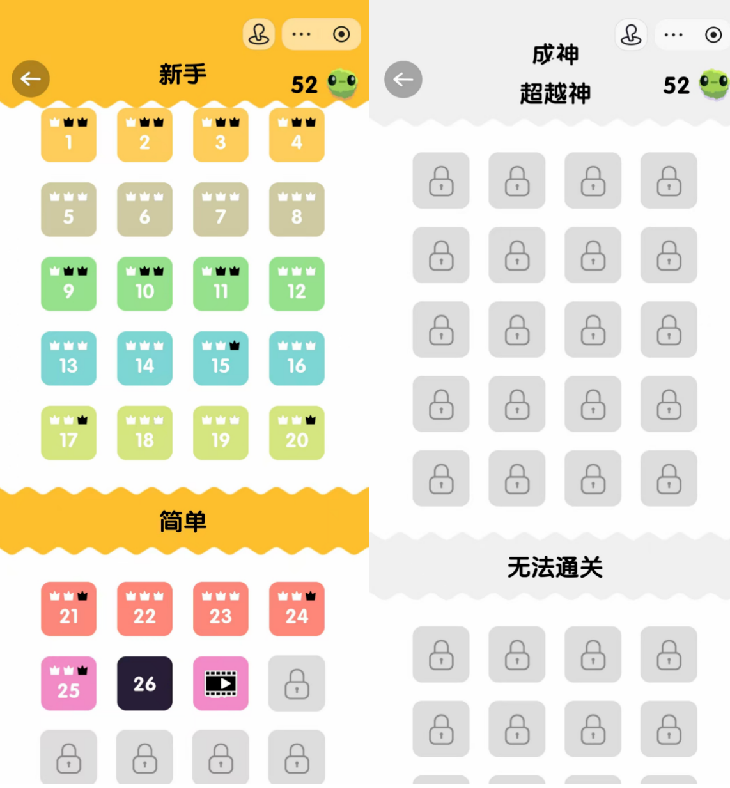 从新手到简单,最终延伸至“成神”“无法通过”等挑战性关卡,梯度设计既保证了入门门槛低,又留存了进阶挑战的乐趣。