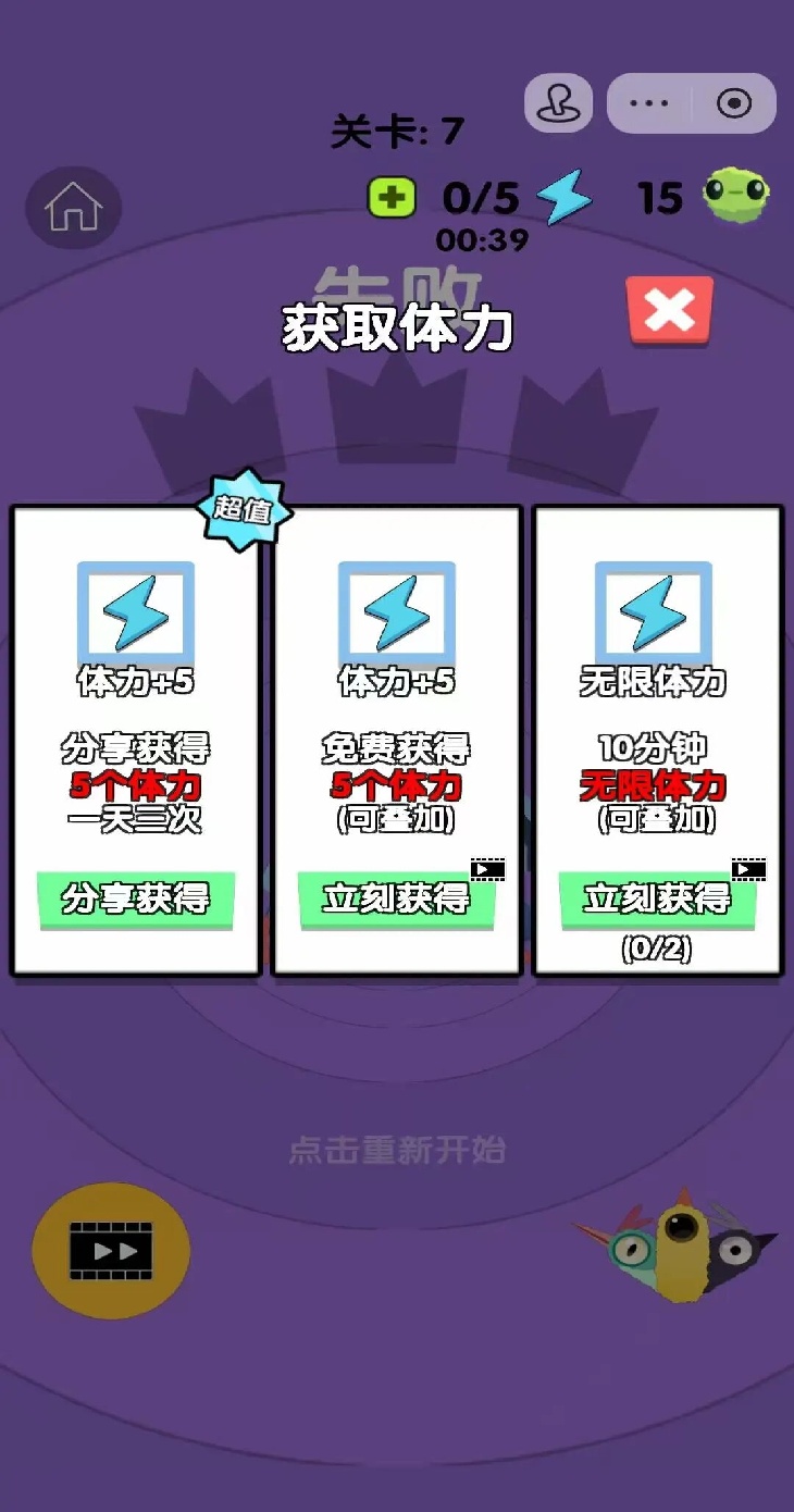 不过当前《玩到爽飞》的商业化设计较为简单,主要依靠体力与皮肤获取的广告埋点。