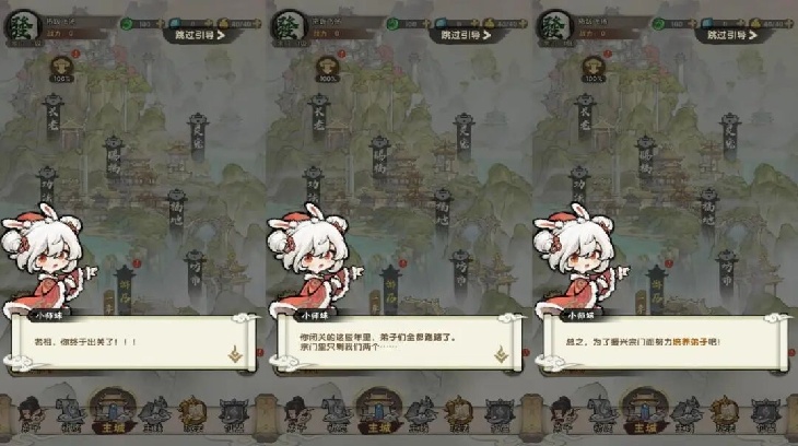 游戏开局设计了一段简单的背景故事:玩家扮演某宗门的老祖,在闭关期间,门下弟子几乎散尽,仅剩一人作为新手引导,协助玩家重建宗门。在游戏前期,围绕“招收弟子、培养弟子、壮大宗门”展开的循环,带来了鲜明的修仙题材宗门经营体验。