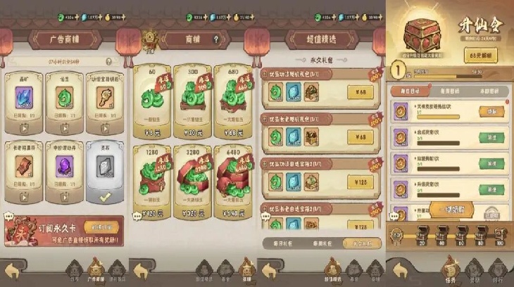 商业化方面,《我的弟子都有先天圣体》采用混合变现模式,内购部分包括仙玉、礼包、通行证等;激励视频则覆盖每日免费抽奖、商店免费购买等场景。
