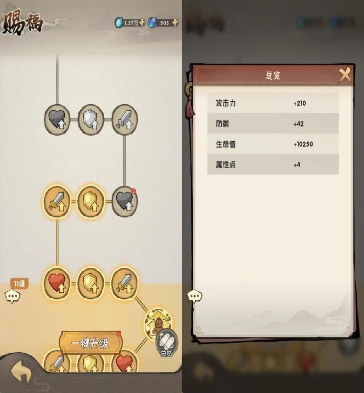 每次游历均可获得“晶矿”,用于提升“赐福”等级,获取全员属性加成。