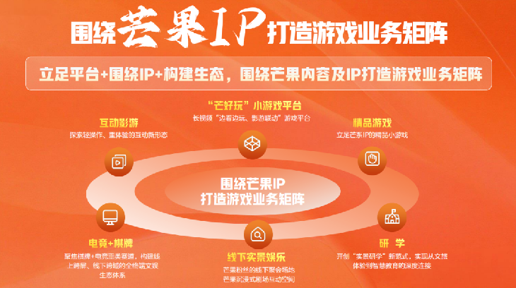 提起芒果,大家脑海中或许会浮现《你好,星期六》、《浪姐》《批哥》《花少》等现象级综艺但今天我想带大家看见芒果的另一面,互娱依托芒果TV多年沉淀的优质内容基因与庞大用户生态,围绕众所周知的大IP,布局了从线下文旅互动、实景探案到线上电竞、棋牌、小游戏,从长视频轻互动到平台建设的游戏业务矩阵。