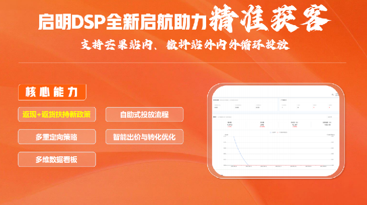 除了IP与内容的赋能,我们还为合作伙伴打造了全方位的支持体系。全新升级的芒果启明DSP平台,不仅支持芒果站内流量的精准投放,更打通了微抖等站外渠道的外循环投放,更推出返现+返货的新扶持政策,助力开发者们精准获客,扩大流量圈层。