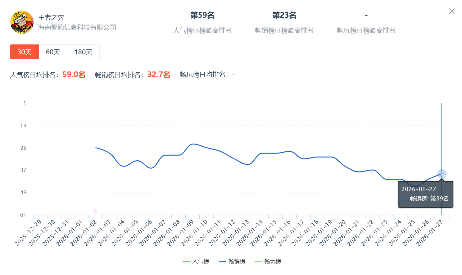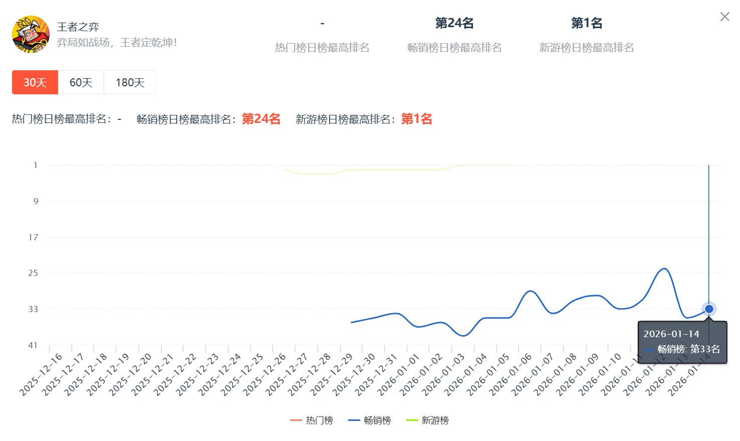 《王者之弈》微信小游戏畅销榜排名